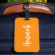 Personalize esta etiqueta de mala com caligrafia de texto moderno e divertido com o seu nome! Esta é a versão laranja brilhante. Ótimo para suas férias de verão, despedida de solteira, acampamento de verão das crianças ou férias de primavera!