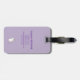 Uma etiqueta de bagagem roxa com um unicórnio fofo em cor pastel e um nome próprio e contato personalizável para uma garota!