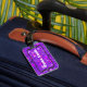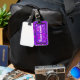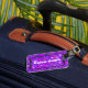 Etiqueta de bagagem roxa e rosa