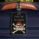 Pirata na parte dianteira. Etiqueta na parte traseira. Adicione seu nome (parte dianteira e parte traseira), endereço e número de telefone. Você pode ser certo que ninguém mais no plano terá este Tag… original!