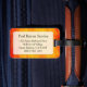 Sagitário "O Arqueiro" astrologia grega, etiqueta de bagagem zodíaca com símbolos Sagitário e fogo para este cartaz de incêndio. Um presente perfeito para esses nasceres entre 21 de novembro e 21 de dezembro. Personalize o reverso desta marca com o seu nome e endereço. Desenhada e projetada exclusivamente por Sarah Trett.
