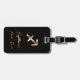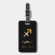 Etiqueta de bagagem elegante com sinal de sagitário dourado sobre fundo preto.