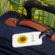 Marca de Bagagem Moderna Personalizada de Girassol colocada sobre fundo branco. A tipografia do Elegante Black Script pode ser personalizada com seu próprio texto. Um adorável acessório de bagagem com um toque de natureza.