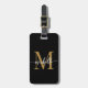 Etiqueta De Bagagem Script inicial do Monograma Dourado preto Elegante