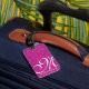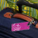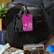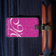 etiqueta de bagagem personalizada cor-de-rosa com correia de couro: monograma e nome de grandes scripts