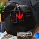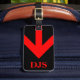 Etiqueta De Bagagem Seta Viagem vermelha monograma em preto