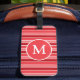 Etiqueta De Bagagem Shades of Red and White Striped Monogrammed