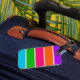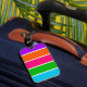Sherbet Stripes Rosa quente, roxo brilhante, verde limão, laranja e etiqueta azul aqua desenhada para bagagem. Por https://www.zazzle.com/store/celestesheffey