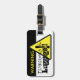 Design Humorístico com sinal de perigo de aviso e textos para personalizar. Design na etiqueta de bagagem com nome e endereço atrás. Você pode facilmente alterar o texto (fonte, cor, tamanho e posição), a cor do plano de fundo clicando no botão personalizar.