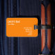 Uma etiqueta de bagagem que combina um cartão de visita de laranja arco-íris com letra branca. O modelo de texto é configurado para se parecer com um cartão de visita para viajantes de negócios. Você pode personalizar o texto e os estilos de fonte conforme necessário para sua empresa.