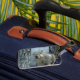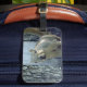 A luggage tag featuring a photo of a squirrel.