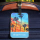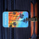 Praia do pôr do sol com palmeiras arte original de Sacha Grossel. A arte do tema da praia, sonhadora do pôr do sol vermelho e laranja no estilo original de aquarela. Tema do pôr do sol do surf.