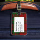 Etiqueta de bagagem de na moda, feita no tradicional padrão de xadrez verde escocês, e clã vermelha Dunbar tartan. Uma área de texto em branco verde, na parte frontal, tem texto preto pronto para personalizar com suas informações. A maneira perfeita de localizar sua bagagem, e faz uma ideia de presente de excelente.
