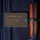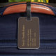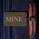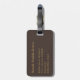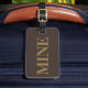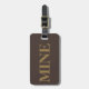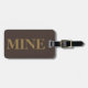 Etiqueta de bagagens com nome e endereço com cor castanha "MINE" numa cor de fundo castanha. Personalize com seu nome e endereço usando os modelos fáceis.