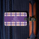 Padrão de xadrez roxa e laranja. Listras roxas e laranja sobre fundo branco.