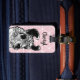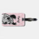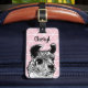 Nome personalizado etiqueta de bagagem de lama branca e preta com um fundo triangular.