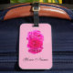 Luggage Tag, With a Beautiful Picture of Triple Pink Roses, on the front of it, ( With the Background removed )= ( Picture by P.J.M.) With a Color Pink Background.
