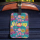Etiqueta De Bagagem Turquesa Floral Personalizada