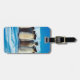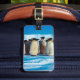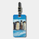 Uma fotografia de um pequeno grupo de pinguins sobre neve com cores azuis aqua.