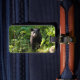 Decorado com uma imagem de um urso negro olhando para fora de uma parede de folhagem verde ao longo de um riacho de salmão na Baía de Tonsina, no Parque Natural da Baía de Kachemak, no Alasca. Por Ted Raynor
