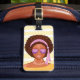 Ele é de acrílico, muito bonito e chegou antes do previsto. Impressão muito boa e cores firmes.