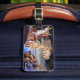 Ele é de acrílico, muito bonito e chegou antes do previsto. Impressão muito boa e cores firmes.