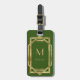 Etiqueta De Bagagem Verde e geométrico Dourado | Monograma e nome