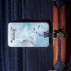 Etiqueta de bagagem personalizada com a imagem de um veado majestoso no inverno. Um fundo azul gelado filtrado dá a esta foto um olhar frio de inverno com um toque mágico. Este animal orgulhoso e nobre fica em uma colina com pinheiros do inverno a distância. Personalize com um nome com uma seta preta por baixo.
