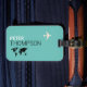 Um design elegante com uma imagem gráfica de um jato branco e o mapa do mundo em uma etiqueta leve de viagem-bagagem, para identificar seus pertences quando viaja pelo mundo