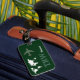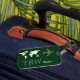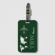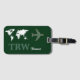 face frontal: um avião verde com o nome e as iniciais do viajante e o mapa-múndi: informações adicionais