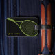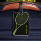 Um design gráfico de uma raquete e bola de tênis... para personalizar com nome e número de telefone