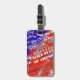 Identifique facilmente suas bolsas com uma imagem de tipografia patriótica nos EUA. O nome do país, Estados Unidos da América, em diferentes estilos de fonte e tamanhos, e a bandeira azul e vermelha americana. Personalize-o com seu nome e telefone ou com qualquer outra informação que você preferir
