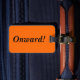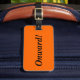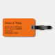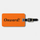 Etiqueta de bagagem com "Onward!", nome e endereço para informação sobre fundo laranja. Personalize com seu nome e endereço, usando os modelos fáceis. A cor da fonte, o estilo da fonte, o tamanho da fonte e a cor de fundo laranja são personalizáveis. Perfeito para o entusiasta da viagem.