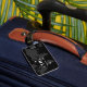 Um design moderno e na moda, com aviões pequenos e um mapa de cinzas do mundo em fundo negro, personalizado com seu próprio nome especial e suas iniciais... um item elegante para viajantes clássicos.