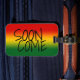 As cores três-tonificadas famosas da listra sinónimas com cultura jamaicana criam o fundo perfeito para a frase jamaicana em maiúsculas, VÊM LOGO.