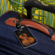 Faça sua bagagem estar para fora em um carrossel do aeroporto com design original do Tag! Este Tag da bagagem apresenta ainda uma vida clássica de um violino velho elegante. Este instrumento gracioso é essencialmente uma caixa de madeira oca com extremidades arredondadas, dois furos graciosos de f e um centro estreito. Os quatro grupos de cordas estendem de um suporte da corda na parte inferior do corpo sobre uma ponte aumentada à extremidade do pescoço estreito, ou do fingerboard onde as quatro cordas são introduzidas em um pegbox e guardaradas lá com Pegs. Os Pegs são usados para ajustar o violino. Quando o arco é tirado através das cordas no corpo do violino produz a música incrível, mágica! Os tons marrons, quase alaranjados dourados lindos são ajustados fora pelo tecido preto gracioso de veludo. Personalize o verso com sua informação pessoal.