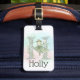 An enchanting capital letter "H" featuring a sweet, fairy-tale Frog Princess. This high-quality, whimsical watercolor artwork is perfect for creating personalized luggage tags, custom bag tags, backpack identifiers, or durable travel accessories. The design uses a soft, ethereal pastel palette (pale pink, mint green, sky blue) that stands out beautifully, making bags easy to spot. Ideal for children's bags, and travel accessories.