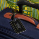 Viagem no estilo de primeira classe com esta etiqueta de bagagem personalizável que apresenta um padrão clássico de xadrez preta e cinza acentuado com um elegante emblema de ouro e nome personalizável e inicial na frente. A parte traseira tem espaço para adicionar um nome, endereço, número de telefone e endereço de email. Esta sofisticada design masculina fará um presente excelente para o Dia dos Pais e para os homens que gostam de viagem.