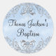 Batismo Sticker. Design de espiral de prata e joias azuis bonito. Por favor, note: todas as imagens planas!