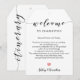 Este cartão/etiqueta de presente moderno e elegante é a adição perfeita às suas bolsas de boas-vindas do hotel. Digite os eventos principais e uma nota personalizada para ajudar seus convidados a navegar no fim de semana. O tamanho extra grande permite que você insira todas as informações de que precisa, e então apenas amarre nas alças de seus sacos de tote!