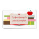 Etiqueta de marcador com pilha de livros, maçã vermelha e vazio abriu livro para texto personalizável. Perfeito para etiquetar livros, CD, etc. Gráficos www.freepik.com