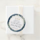 Com belas luzes de corda e delicadas folhas de verdura em aquarela sobre um fundo de madeira azul rústica, esta etiqueta de favor de chá de casal pode ser personalizada com seu monograma em dourado e informações especiais do chá de casamento. Desenhado por Thisisnotme©