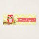 Uma coruja rosa adorável num galho florescente. Esses cartões magros fazem etiquetas de presentes perfeitas para os favoritos para festas e são uma combinação perfeita com os nossos convites para Chás da Baby Owl - basta editar com suas próprias informações conforme necessário. {{Clique em PERSONALIZAR para alterar as cores do texto, as fontes ou as cores de fundo}} Ilustração original do vetor por mim, Melanie Taylor, para que seja realmente única!