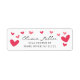 Etiqueta de endereço de retorno com corações aquarela em rosa e vermelho, fácil de personalizar com seu nome e endereço.