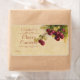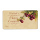 Uma ilustração de estilo vintage de cerejas vermelhas escuras em um galho com folhas verdes, sobre fundo bege com texto cor russet, feito de uma pintura antiga. O rótulo é criado para enlatar ou engarrafar casas de doces, geleias e conservas. Você pode deixar o espaço de data para escrever ou mudar para a data em que seu emperramento ou gelatina foi feito.
