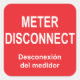 Uma folha de etiquetas adesivas de 6, 3" x 3" METER DISCONNECT com legenda espanhola. Descontexión del medidor.
