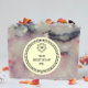 O adesivo apresenta um design moderno e limpo com fontes sofisticadas e ilustrações sutis que complementam a estética do seu empacotamento de sabão.
