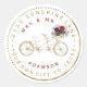 Design exclusivo de etiqueta de endereço circular com uma bicicleta dourada falsa com um buquê floral em aquarela cor de rosa burgundy, escrita circular. Use a ferramenta Personalizar para adicionar suas informações, iniciais e talvez seja necessário ajustar para caber, mudar as cores da fonte. Adicione um espaço entre as letras e espaço duplo entre as palavras para este "visual".