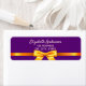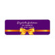 Etiqueta de endereço de devolução de estilo elegante, clássico, glamoroso e feminino. Uma fita e laço dourados. Um fundo roxo feminino elegante. Modelos para nome e endereço. Letras em rosa dourado.