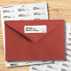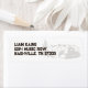 Esta é uma etiqueta de endereço de devolução monocromática com tema Western. O design inclui um chapéu de cowboy proeminente, um cacto saguaro e uma cordilheira ao fundo. Com espaço para adicionar um nome e endereço de devolução impresso em uma fonte negrito sem serifa. A estética geral é rústica, inspirada no campo e no Oeste Americano.